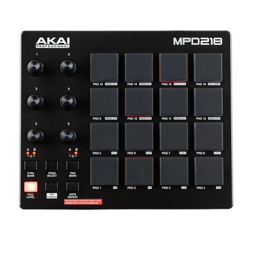 MPD218 is a MIDI-over-USB pad controller designed for producers, programmers, musicians and DJs. Its blend of MPC controls and technologies mesh with USB connectivity brings the feel of classic beat making into computer music production. Features 16 backlit MPC pads 48 assignable pads accessible via 3 banks 18 assignable 360-degree potentiometers accessible via 3 banks MPC Note Repeat and Full Level iOS compatible using the Camera Connection Kit (sold separately) 16 configurable presets USB powered, no AC adapter required Includes Ableton Live Lite, Akai Professional MPC Essentials, Sonivox Big Bang Cinematic Percussion and Big Bang Universal Drums