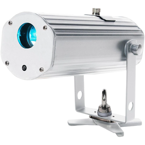 The ADJ PinPoint Gobo is a battery powered GOBO projector powered by a 10-Watt cool white LED. It includes 4 standard removable GOBOs, 5 color gels and a frost filter to defuse the beam for wider washes of light.