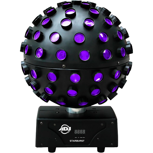 The Starburst is a LED sphere effect that rotates to your music while shooting out super-sharp, multi-color beam effects. With a light source consisting of five 15W HEX (RGBWA+UV) LEDs, the Starburst provides access to a wider pallet of colors than previously possible, giving you the flexibility and creative scope to entrance your audience with unique hues and attention-grabbing effects. Features 5 x 15W 6-in-1 HEX RGBWA+UV LEDs (Red, Green, Blue, White, Amber & UV) Produces 34 crisp, bright beams Beam Angle: 1 Degree 13 DMX Channels 3 operational modes: Auto Run, Sound Active, DMX Controlled Stand Alone or Master-Slave Set-Up IEC Power Cord Daisy Chain 20 units @ 120V
