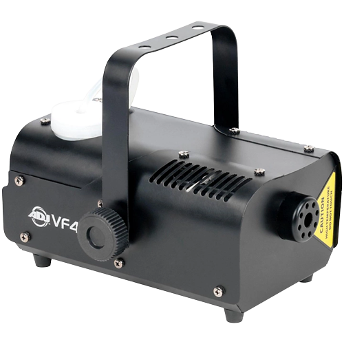 The ADJ VF400 is a very compact, 400W mobile Fog Machine that is great for mobile entertainers, and small nightclubs and bars that want to add atmosphere to their events. It comes with a 5 liter internal fog fluid tank, a wired remote control, and uses water-based fog fluid. Features 400W mobile Fog Machine High efficiency heater block burns through fog with less residue Warm-up time: 5 minutes Output: 3,000 cubic ft. per min Internal fog fluid tank: .5 Liter Fluid level indicator Includes ADJ VF400R wired remote Only use high quality, water-based fog fluid Dimensions (LxWxH): 9.5" x 8" x 5.5" Weight: 4 lbs. / 2 kg.