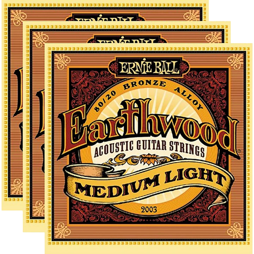 Ernie Ball 2003 Earthwood 80/20 Bronze Medium Light Acoustic Strings (3-Pack)
