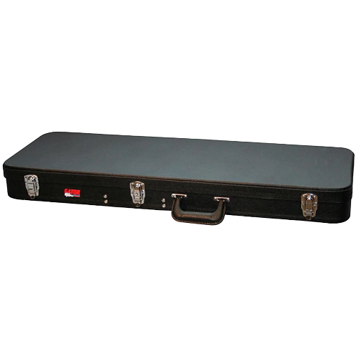 Description The Gator GWE-Elec Hardshell Electric Guitar Case features rugged 3-ply Luan wood construction with Tolex PVC covering, attractive contrast stitching, comfortable matching handle, metal feet on the bottom and side, plush padded interior with accessory compartment, and locking latches for security.