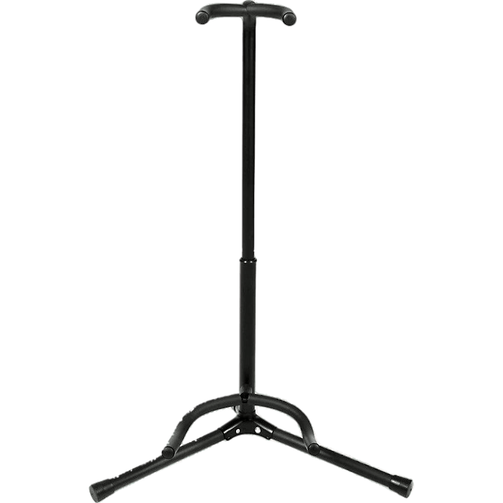 The GSS guitar stand is a rugged metal universal guitar stand that holds electric, acoustic, and bass guitars. It features a neck support that locks in place to keep your guitar secure and a heavy-duty rubber covering to protect your finish.