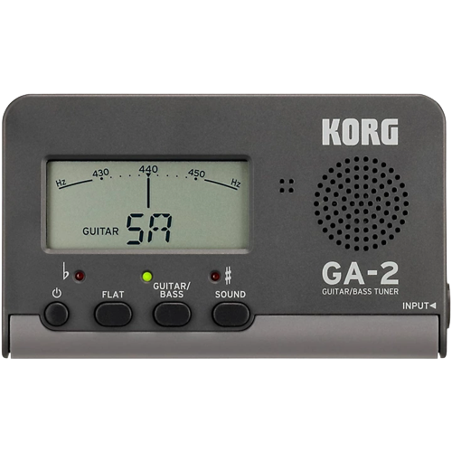 Description With a size similar to an audiocassette case, the KORG GA-2 guitar and bass tuner features a distinguished design in a pocket-sized package. Its large display window offers greater visibility than many tuners on the market.