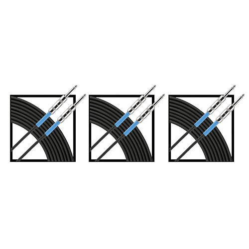 Description Three cables at a bargain. Instrument cable with Neutrik connectors, 20-gauge copper core and braided copper shielding (95% coverage); strain relief and heavy PVC jacket.