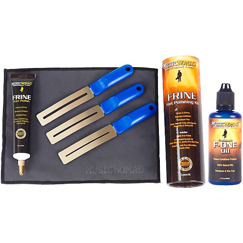 Description MusicNomad Total Fretboard Care Kit gives you all the products to restore, maintain and protect your frets and fretboard wood to give it that showroom look and feel. Start by using MusicNomad's FRINE fret polishing kit that will not only make bending and vibrato easier, but prolong your string life.