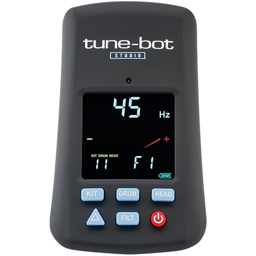 A first for percussionists, the tune-bot studio electronic drum tuner from Overtone Labs is a quick and accurate method to tune your drums. With a simple clip to the hoop and strike of the drum, the tuner will filter out overtones and give you a measurement of the pitch of individual lugs in Hz or notes.