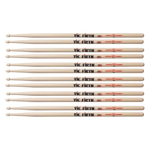 The Vic Firth 7A Wood Tip Drum Sticks (6 Pair Bundle) is a value pack designed for drummers who prefer lightweight sticks with fast response and precise control. This bundle includes six matched pairs of Vic Firth American Classic 7A drumsticks, making it ideal for frequent practice, rehearsals, lessons, and live performances.